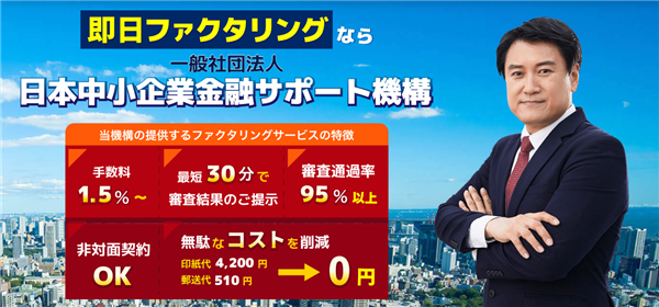 日本中小企業金融サポート機構は、非営利団体が運営するファクタリングサービスです。